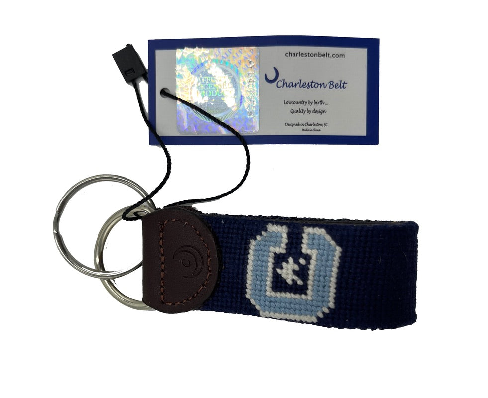 Our Citadel logo handmade needlepoint key fob is crafted from genuine top grain leather, featuring beautiful hand-stitched needlepoint details and a solid "D" ring. An exceptional combination of quality materials and attention to detail make these key fobs a timeless accessory.  Also available with the Spike mascot, Big Red and The Ring.  Officially licensed.