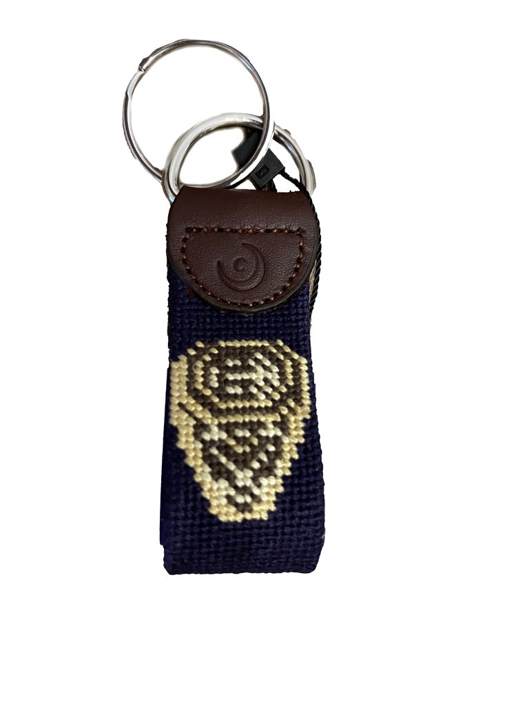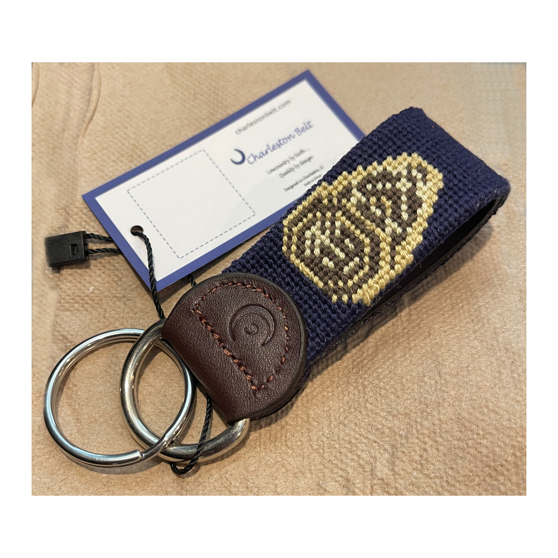 Our Citadel class ring handmade needlepoint key fob is crafted from genuine top grain leather, featuring beautiful hand-stitched needlepoint details and a solid "D" ring. An exceptional combination of quality materials and attention to detail make these key fobs a timeless accessory.  A great way to show your accomplishment!
