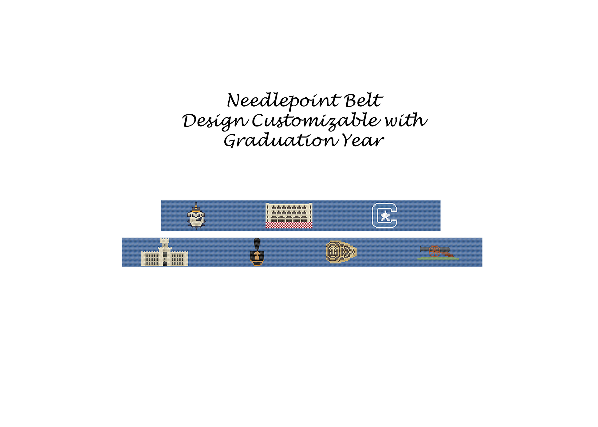 Note, this product describes the stock design for The Citadel Days needlepoint belt.  To view the personalized design, please click here. With the personalized design you can add the class year and/or company to the belt!
