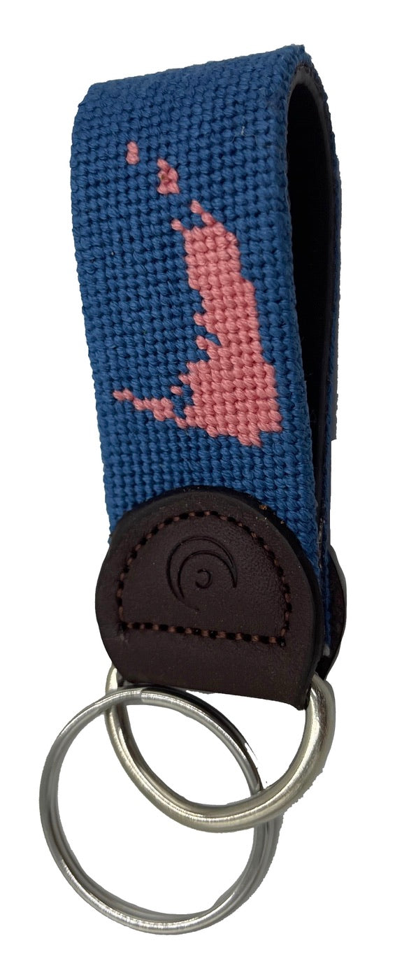 Key Fob - Nantucket Red and Blue Hand-stitched Needlepoint