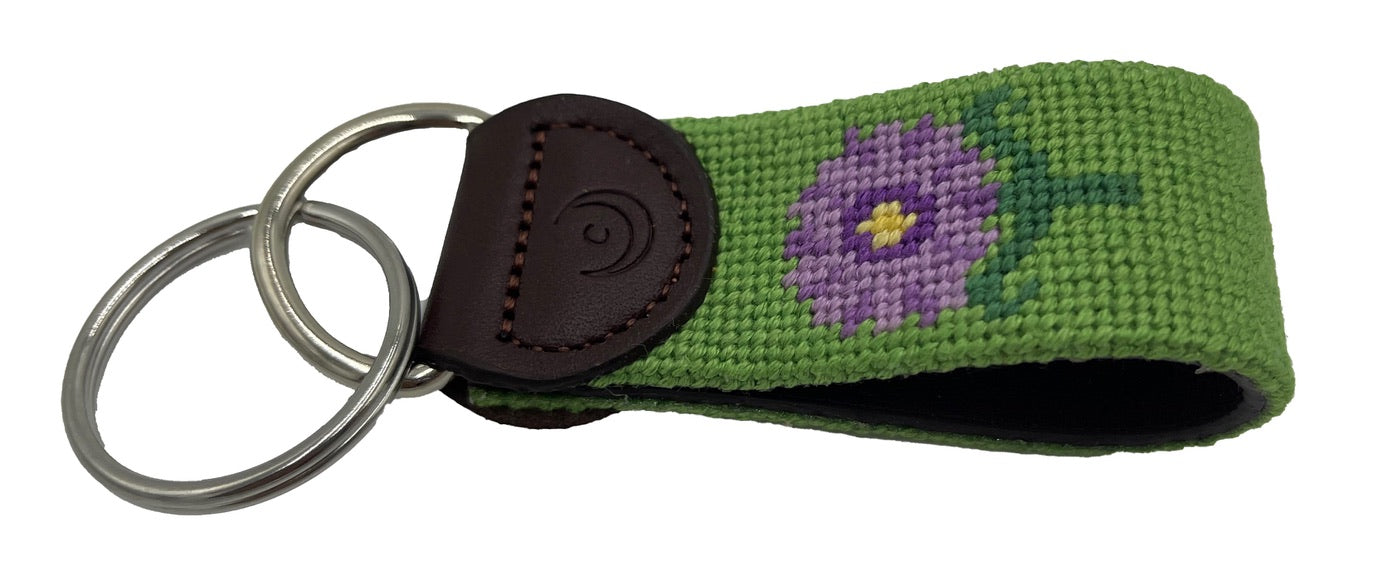 Key Fobs - Aster Flower Hand-stitched Needlepoint