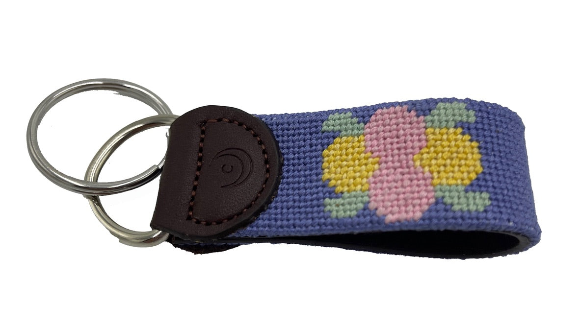 Premium genuine leather and handcrafted needlepoint combine for a timelessly sophisticated look with our key fobs. Delicately detailed and lovingly stitched by hand, these charming key rings accessorize perfectly and add a touch of brilliance to your style. And the solid "D" ring finishes everything off with a spark of elegance!