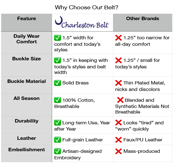 The colors are unique. Belt fits great. Cannot beat the price.