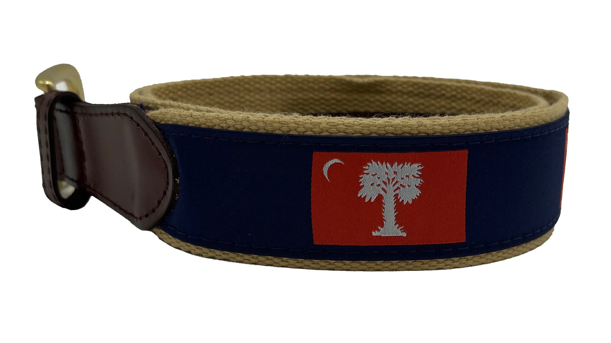 Experience the undeniable quality of The Citadel Big Red Canvas Ribbon belt! Officially licensed, this belt is crafted with quality khaki canvas and a navy blue ribbon, showcasing an iconic "Big Red" design. Plus, it is finished with dark brown, genuine leather and a solid brass buckle won't discolor, nick, or wear down! Perfect for devoted Citadel fans, this stylish and durable belt is made to last a lifetime.